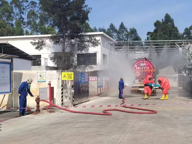 為進(jìn)一步提高崗位人員對(duì)突發(fā)事件的處置能力、應(yīng)變能力,檢驗(yàn)公司各有關(guān)部門和應(yīng)急救援機(jī)構(gòu)的快速反應(yīng)程度和組織、協(xié)調(diào)處理突發(fā)事件的能力,以及檢驗(yàn)單位生產(chǎn)安全事故應(yīng)急預(yù)案在實(shí)施過程中的符合程度,2024年3月29日下午,海龍化工在化工廠區(qū)組織液氨泄漏專項(xiàng)應(yīng)急預(yù)案演練及消防應(yīng)急演練。